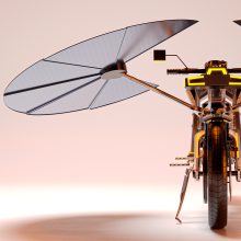 MASK Architects – the international architecture and design firm founded by Öznur Pınar Cer and Danilo Petta – presents SOLARIS®, the world’s first fully solar-powered autonomous motorcycle that challenges the foundations of today’s mobility economy. In a world where transportation is shaped, restricted and monetized by fuel dependency and charging infrastructures, SOLARIS® breaks the cycle entirely. It introduces a new model of absolute independence in which the user is no longer tied to gas stations, electric grids or commercial charging networks. SOLARIS® generates its own energy, anywhere and at any time, giving riders complete freedom from traditional mobility systems and offering a radical alternative to the global commercial model that has dominated mobility for more than a century. Born from MASK Architects’ Invent, Integrate and adapt in architecture and design projects philosophy—where design is not an aesthetic gesture but a technological invention—SOLARIS® transforms the motorcycle into a self-sustaining organism. The vehicle operates exclusively through solar intelligence, merging energy autonomy with a biomimetic design inspired by the fluid, muscular movement of a leopard. The result is a new typology of transportation: a solar creature that moves with the grace of nature and the power of engineered precision, expressing freedom not as a metaphor, but as a technological reality. Its retractable photovoltaic wings unfold into a circular solar array that collects, concentrates and converts sunlight into electrical power, stored within a high-capacity lithium system. When parked, SOLARIS® becomes its own charging station; when in motion, it becomes a silent, emission-free companion that requires no fuel, no infrastructure and no dependence on external systems. This shift positions SOLARIS® as a profound challenge to existing commercial mobility models—proposing a future where individuals generate their own clean energy and travel without limits, cost or carbon footprint. At the mechanical level, SOLARIS® integrates a high-torque electric motor for instant acceleration, regenerative braking that recovers kinetic energy, and a lightweight aluminum–carbon composite chassis engineered for strength and agility.
