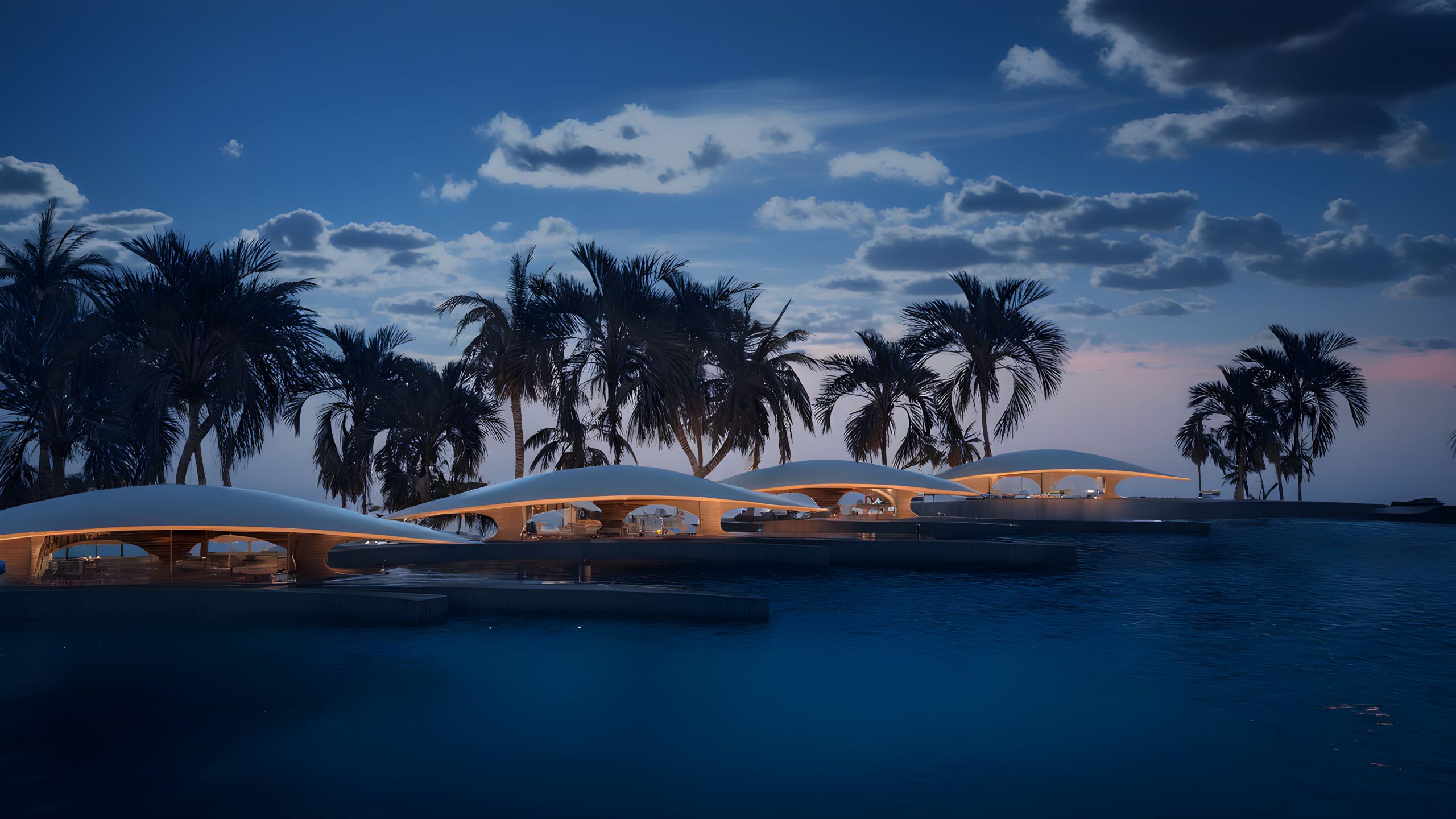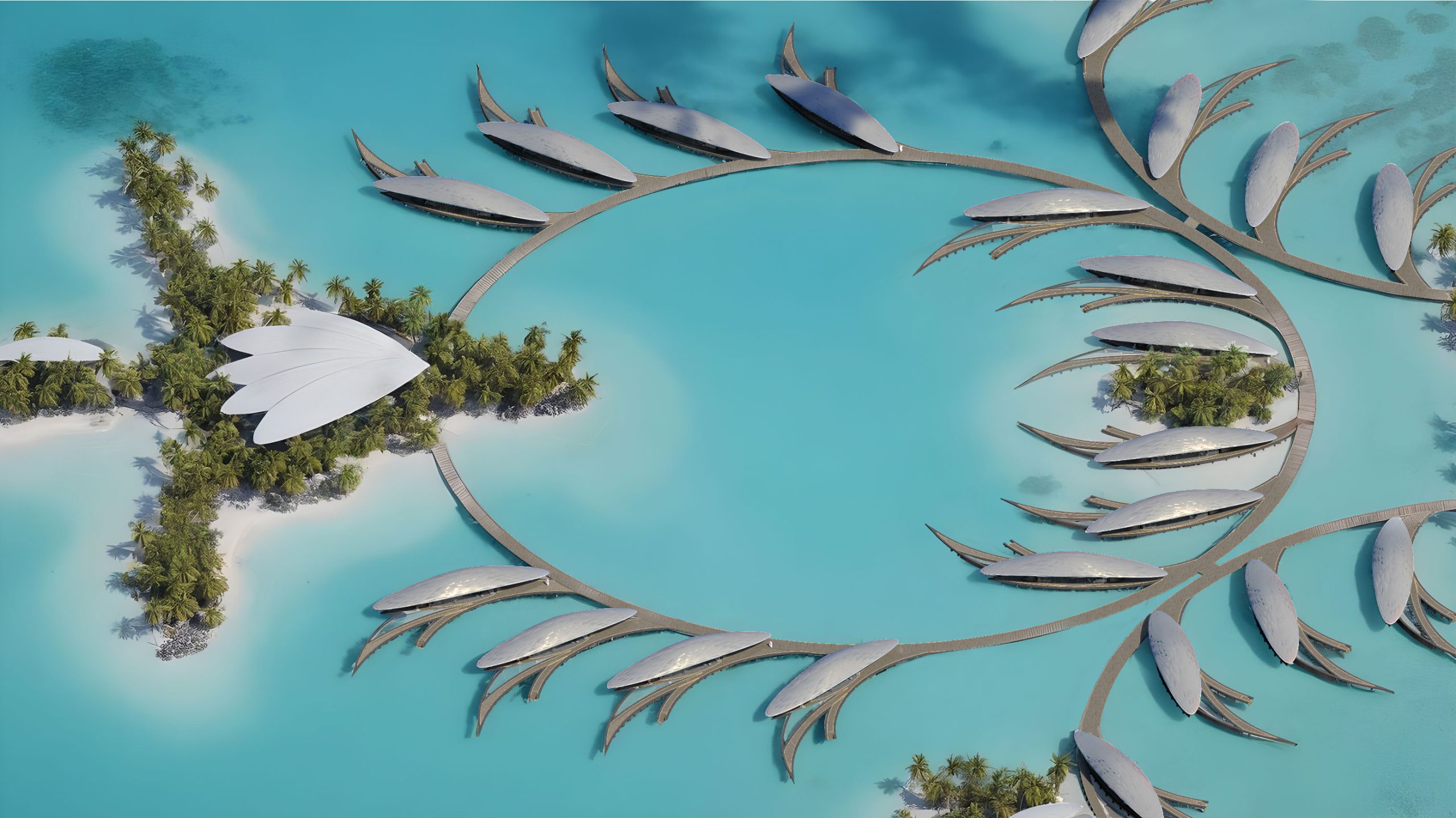 Mask Architects is proud to present a groundbreaking proposal for the world’s first hydrogen-powered floating luxury resort, a project that combines cutting-edge technology, sustainable design, and visionary architecture to redefine the concept of hospitality. Located along a pristine 10-kilometer stretch of coastline in the Middle East, the resort sets a precedent for responsible luxury, where environmental stewardship, guest experience, and innovative design coexist in harmony. The resort comprises 24 private floating cabanas, designed to function as autonomous, self-contained units that offer maximum privacy, direct water access, and unparalleled comfort. Each cabana features modular construction, allowing rapid installation, flexibility in layout, and minimal ecological disruption. Inspired by the fluidity of nature and the organic forms of palm fronds, the cabanas’ architecture embodies a biomorphic language that blends seamlessly into the surrounding marine environment. Expansive glass façades, open-air terraces, and cantilevered decks create visual and spatial continuity with the sea, maximizing natural light and offering guests uninterrupted views of the horizon. Central to the resort is a hub of social and recreational facilities, including restaurants, beach clubs, lounges, wellness centers, and fitness areas. These spaces are designed to foster social interaction while maintaining a sense of intimacy and exclusivity. The hub is thoughtfully positioned to serve as a connective tissue between the floating cabanas, ensuring smooth circulation and creating a fluid transition between private and public zones. Outdoor decks, open-air pavilions, and landscaped terraces further reinforce a connection to the environment, allowing guests to experience the natural beauty of the coastline while engaging with resort amenities. Mask Architects presents the world’s first hydrogen-powered floating luxury resort, a game-changing project redefining sustainable hospitality. Located along a pristine Middle Eastern coastline, the resort features 24 private floating cabanas, restaurants, beach clubs, and wellness facilities, all designed with fluid biomorphic architecture that harmonizes with the marine environment. It will provide a more ecological, sustainable environment by producing energy from seawater, combining hydrogen, solar, and advanced desalination systems to ensure zero-carbon operations. AI-driven systems optimize energy, climate, and predictive maintenance. This innovative project opens a new way for the hospitality sector to find solutions for energy resources, tackle climate change, and inspire responsible, luxury tourism that balances elegance, comfort, and environmental stewardship. Sustainability is at the heart of the project’s design. The resort operates entirely on hydrogen energy, produced on-site through water electrolysis. This innovative approach ensures carbon-free operation while demonstrating the viability of renewable hydrogen technologies in large-scale hospitality projects. Solar energy, energy storage solutions, and advanced desalination systems complement the hydrogen infrastructure, enabling the resort to function independently of external power sources while maintaining minimal environmental impact. Waste management, water recycling, and energy optimization systems are fully integrated, reflecting Mask Architects’ holistic approach to responsible luxury design.